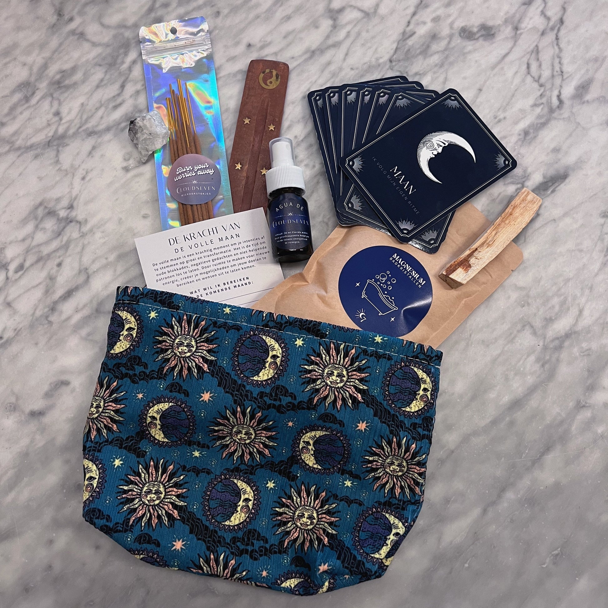 De krachtig energie van de volle maan is perfect voor een verdiepend voetenbadritueel. Water is sterk verbonden met de maan en tijdens de volle maan worden mineralen optimaal door het lichaam opgenomen. Met deze kit creëer je een rustgevend ritueel dat helemaal past bij deze bijzondere maanfase. Heerlijk even een momentje voor jezelf om op te laden, intenties te zetten voor de komende maand en los te laten wat jou niet meer dient. Zo maak je ruimte voor jouw wensen om uit te komen. Tijdelijk inclusief tof opbergzakje met rits.