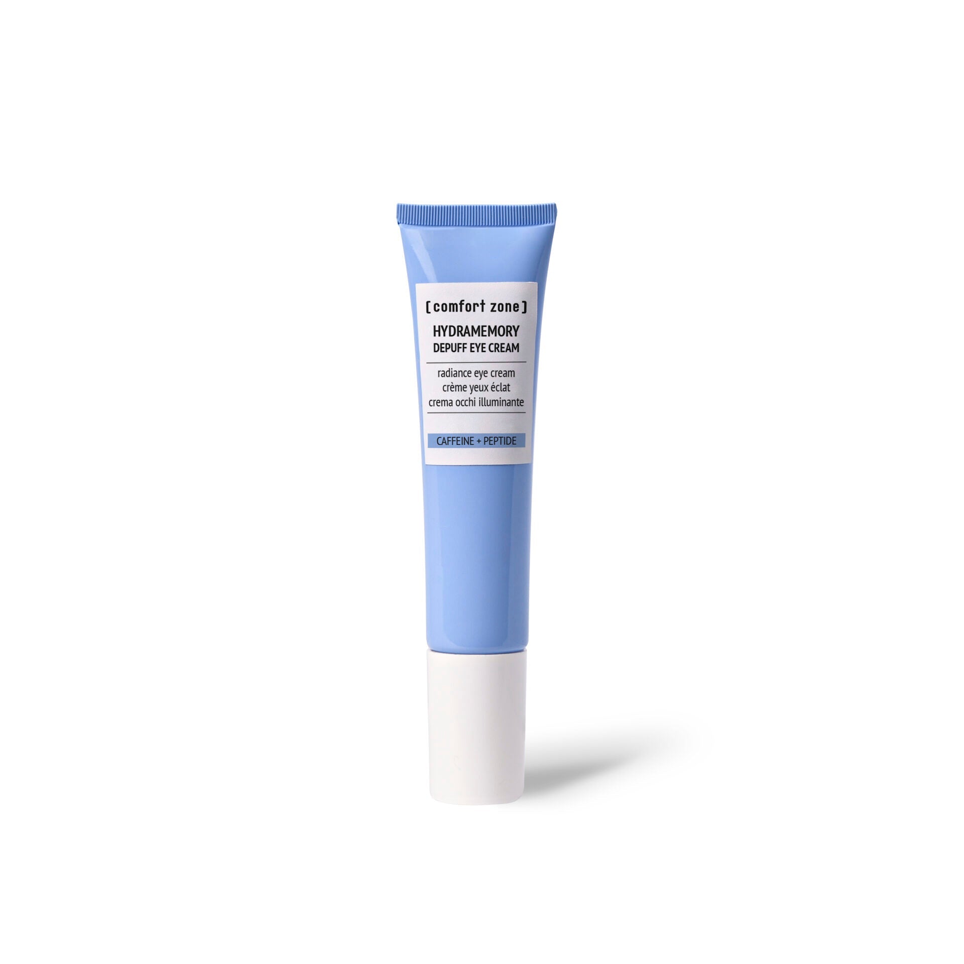 Een lichtgewicht oogcontourcrème die depuffing en hydratatie combineert, verrijkt met cafeïne en de speciale oogpeptide acetyl tetrapeptide-5.