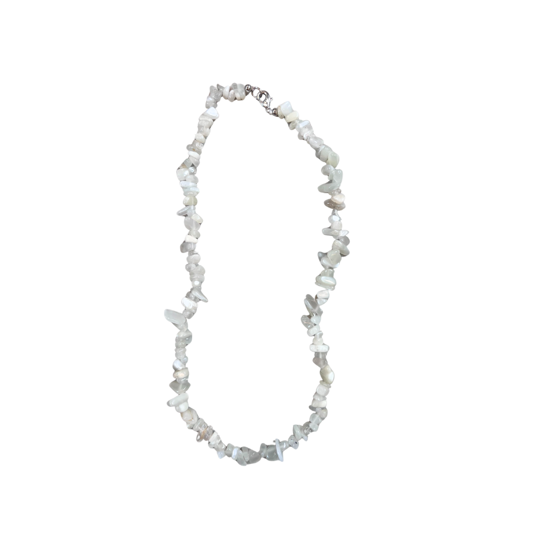 Een prachtige edelsteenketting met de Maansteen. Maansteen staat bekend om haar kalmerende, ontgiftende en troostende werking. Ze versterkt je intuïtie, stimuleert de vrouwelijke energie en bevordert een diepe, rustgevende slaap met fijne dromen.